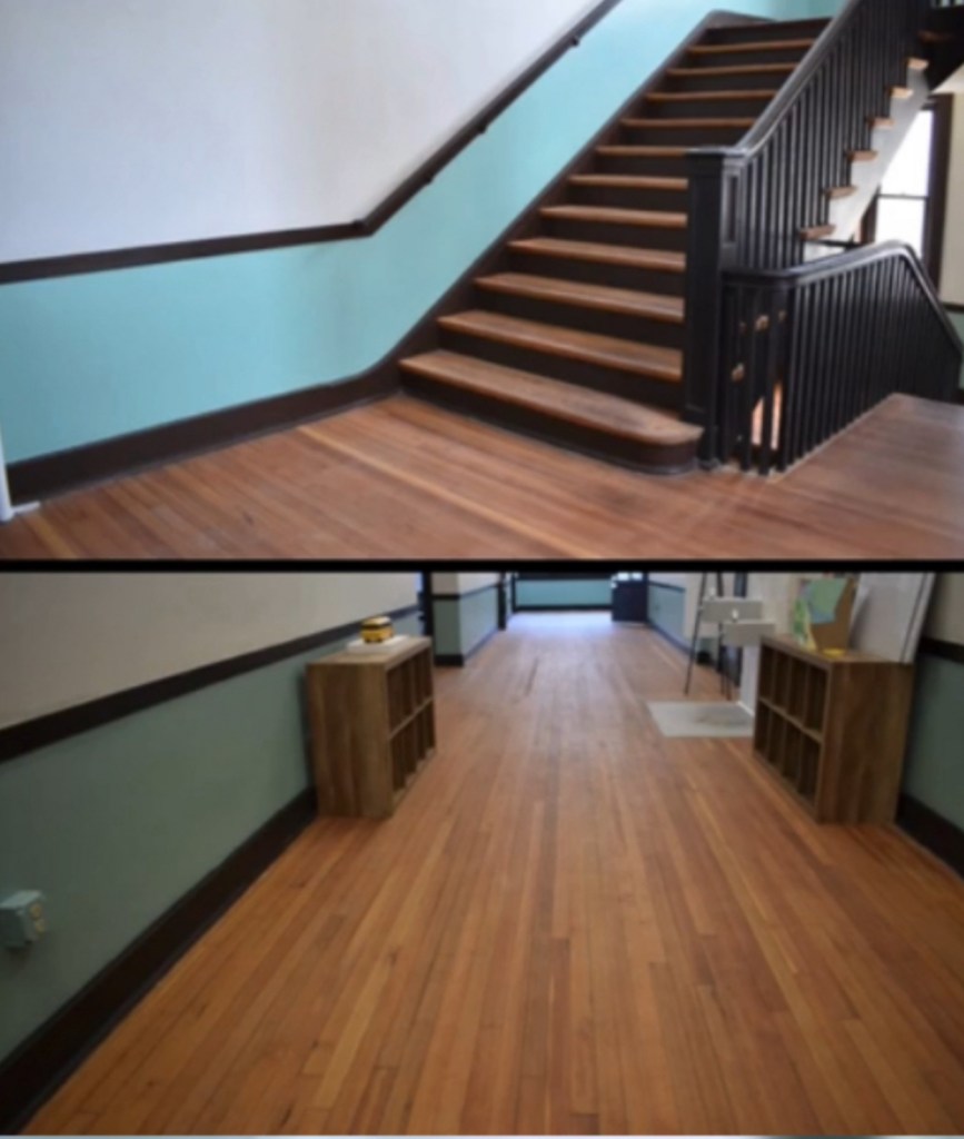After Rustic Restoration was finished with my mom’s floors, they were beautiful! These were very old floors that had been damaged from 65 years of use with never having anything done to them. When Byron finished refinishing them, they looked so good. They were the number one reason the house sold so fast!