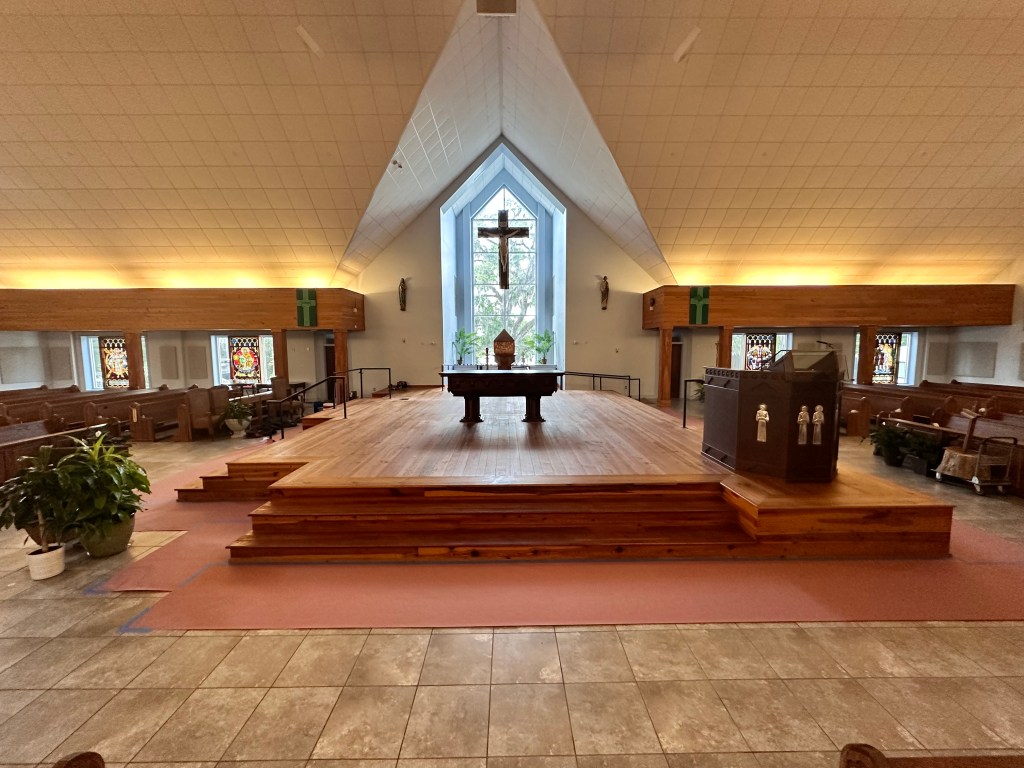 We redid the altar with oil and wax to freshen it up after years of constant use.